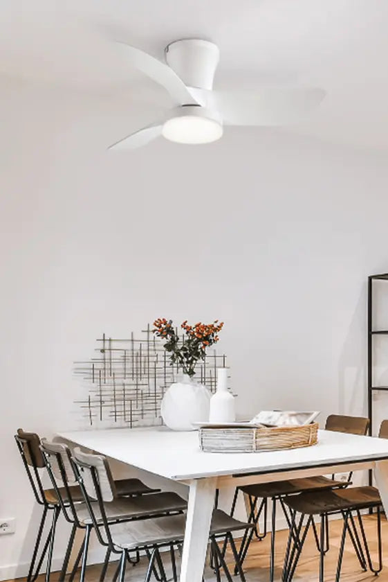 Breathe easy in every corner. This low-profile ceiling fan brings quiet power, custom light, and cool comfort into compact spaces — all with a sleek remote at your fingertips. Smart, silent, and beautifully effortless.