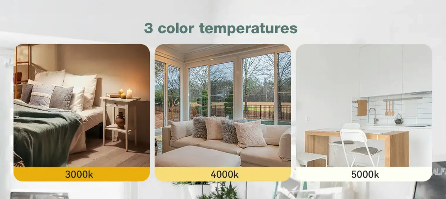 Featuring a dimmable light fixture with three color temperature settings (3000K to 6000K).