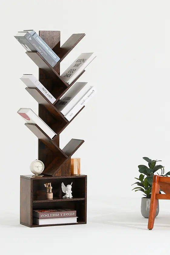 Ideal for tight spaces, this narrow tree bookshelf fits perfectly in bedrooms, home offices, and hallways. It offers ample storage for books, decorations, and more.
