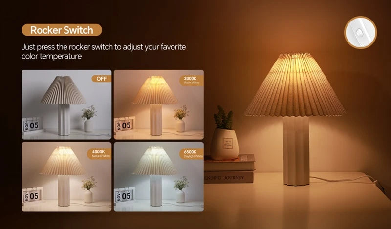 Simple operation for everyone! Easily turn the lamp on/off and adjust the light color using the convenient rocker switch.