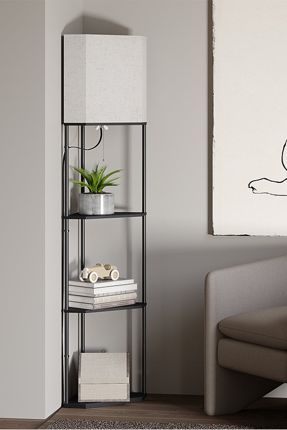 SUNMORY Sector Corner Shelf Lamp with Linen Shade