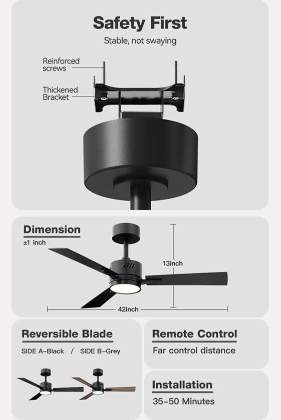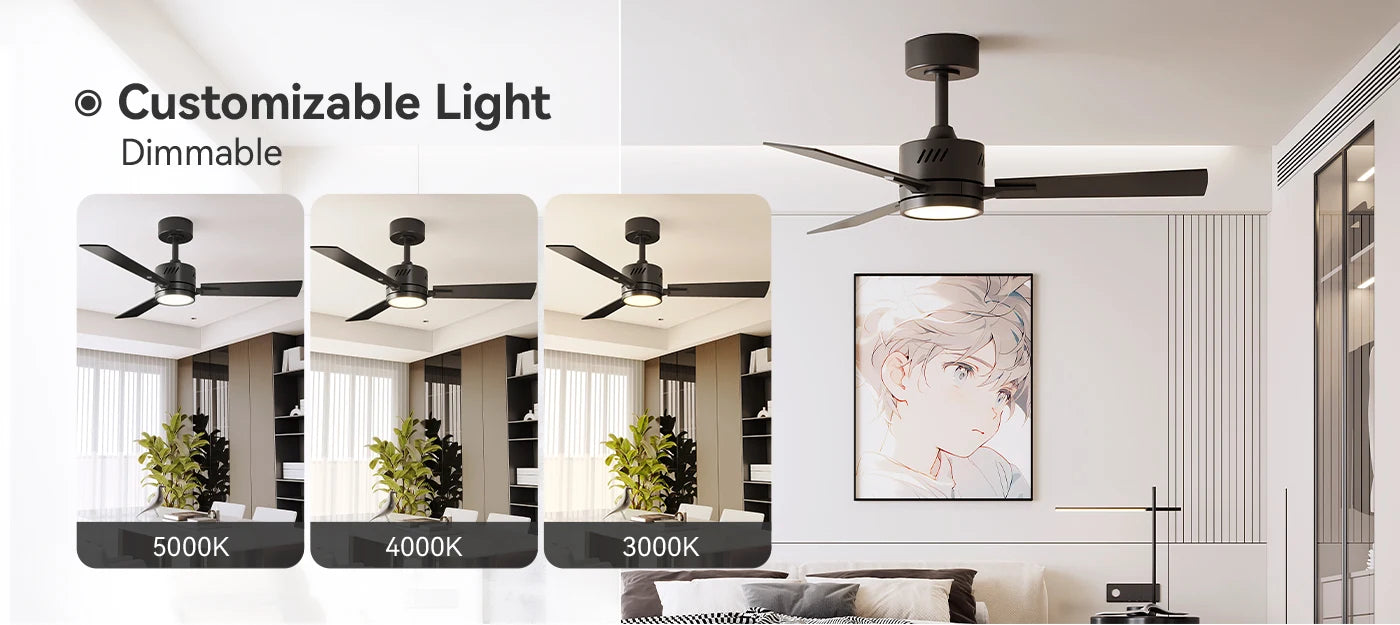 Effortlessly quiet, beautifully modern—this ceiling fan brings harmony to your space in both form and function. Whether casting a soft glow for evening calm or brightening your morning with customizable color temperatures, it adapts to every mood.