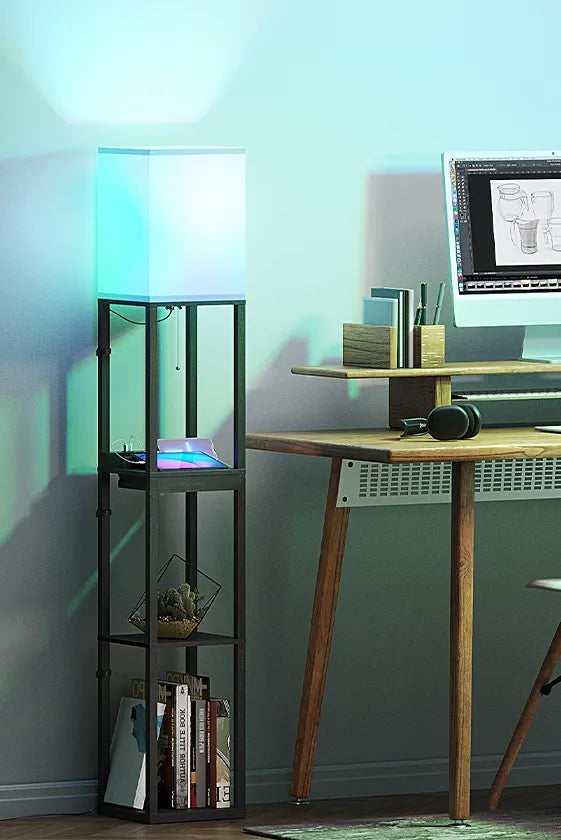 More than just a lamp, this warm-hearted shelf light quietly shapes the atmosphere of home—softly illuminating your evenings, charging your essentials, and offering space for memories and everyday things. With a smart RGB bulb offering millions of colors and app control, it adapts to your mood with ease. The built-in USB ports, outlets, drawer, and open shelves blend function with comfort, creating a quiet corner of beauty and belonging—where light, life, and little moments meet.