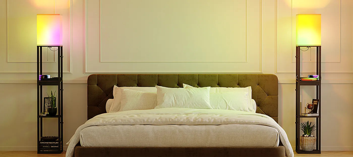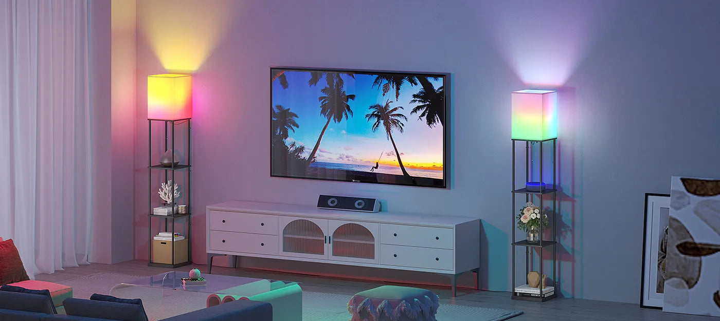 SUNMORY Wood Shelf Floor Lamp with APP Control & RGB Bulb